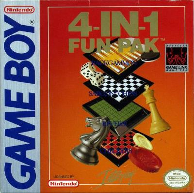 Now you can have four of the most popular board games of all time on your GAME BOY... all together in one fun-filled package! Sargon Chess... Checkers... Backgammon... Reversi... any time, any place. Interplay's 4-in-1 Fun Pak is the perfect opponent, at home or on the road. All four games can be played solo, face-to-face, or via GAME BOY's GAME LINK. So, whenever you're looking for tough competition, just turn on your GAME BOY and take your best shot.