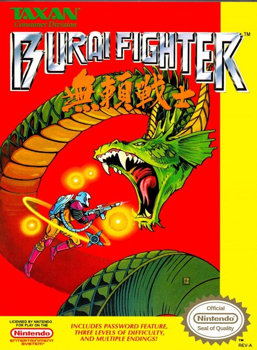 In a remote corner of the galaxy, there lives a race of super-brains known as the Burai. For thousands of years, their vast mental capabilities have been focused upon one goal: the conquest of the universe! To accomplish this, they are creating huge armies of robo-mutants - bizarre creatures, half robot and half living flesh. With their seven manufacturing bases producing thousands of robo-mutants each day, the Burai armies will soon overrun the galaxy - unless you can stop them! Strap on your proton pack, charge up your laser cannon, and prepare to do battle with the deadliest army of mutant rogues in the universe. You must somehow penetrate the seven bases of the Burai, where you will confront a super-mutant guarding each base - monstrous creatures like the Giganticrab, Jawsipede, and Fangskull - until finally, you face the terrifying Slimedragon! But with the awesome arsenal of weapons at your command, victory may still be within your reach. It's up to you to rid the universe of the evil Burai once and for all!